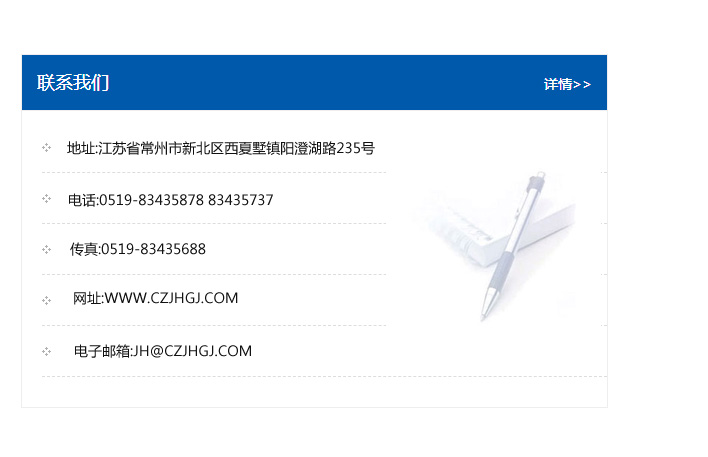 地址:常州市新北區友邦商務大廈1幢16、17層  電話:0519-85101652  傳真:0519-85112595  郵編:213022  網址:www.cz-jiayue_cn.zhenyeedu.com  郵箱:xiajifengaa@163.com